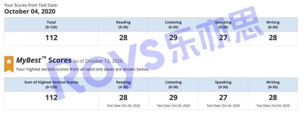 經(jīng)過8天一對一面授課程,總分拿下112 ,口語單項更收獲超高分27