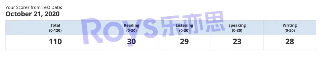 Roys樂亦思托福課程學(xué)員實(shí)現(xiàn)99到110的跨越