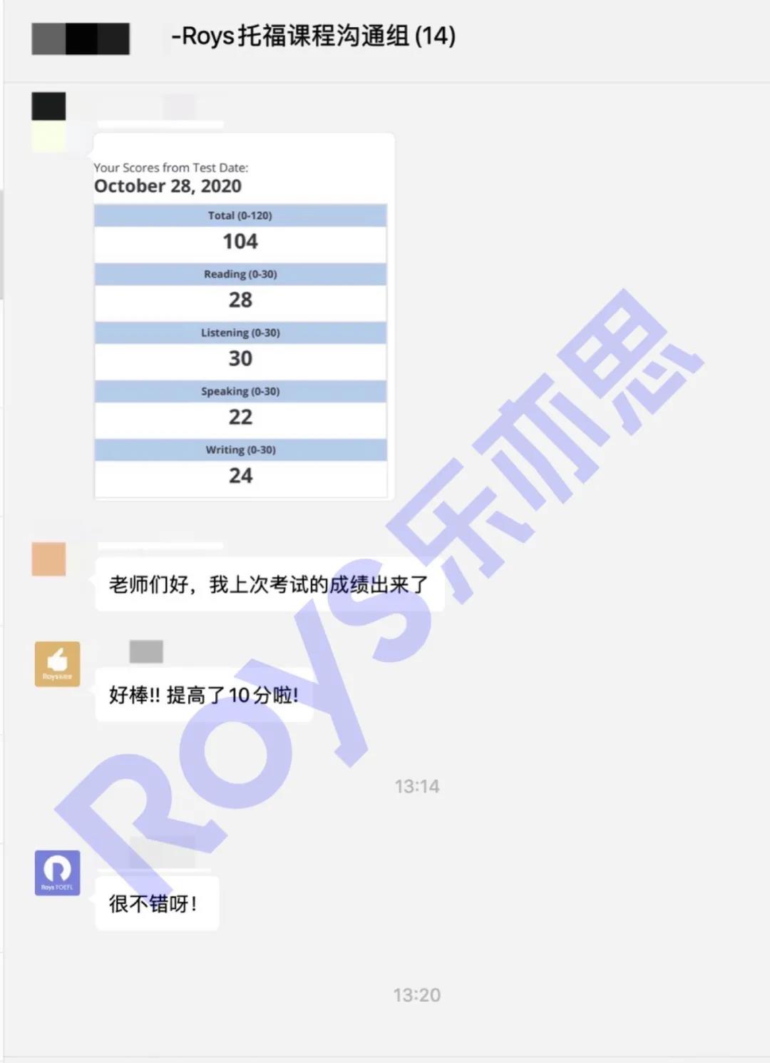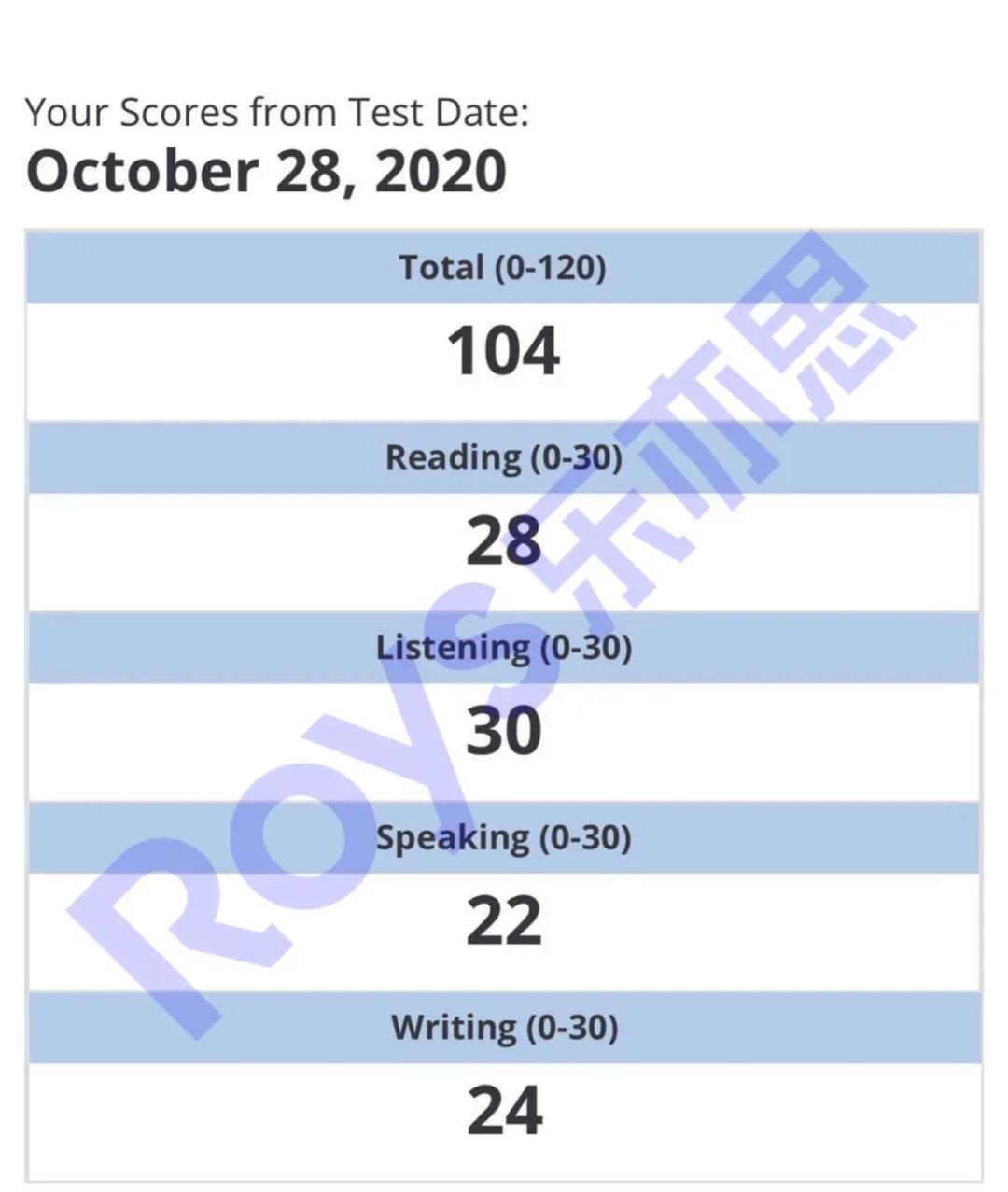 Roys樂(lè)亦思托福課程學(xué)員實(shí)現(xiàn)94到104的跨越