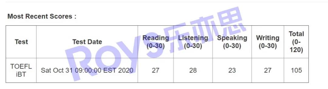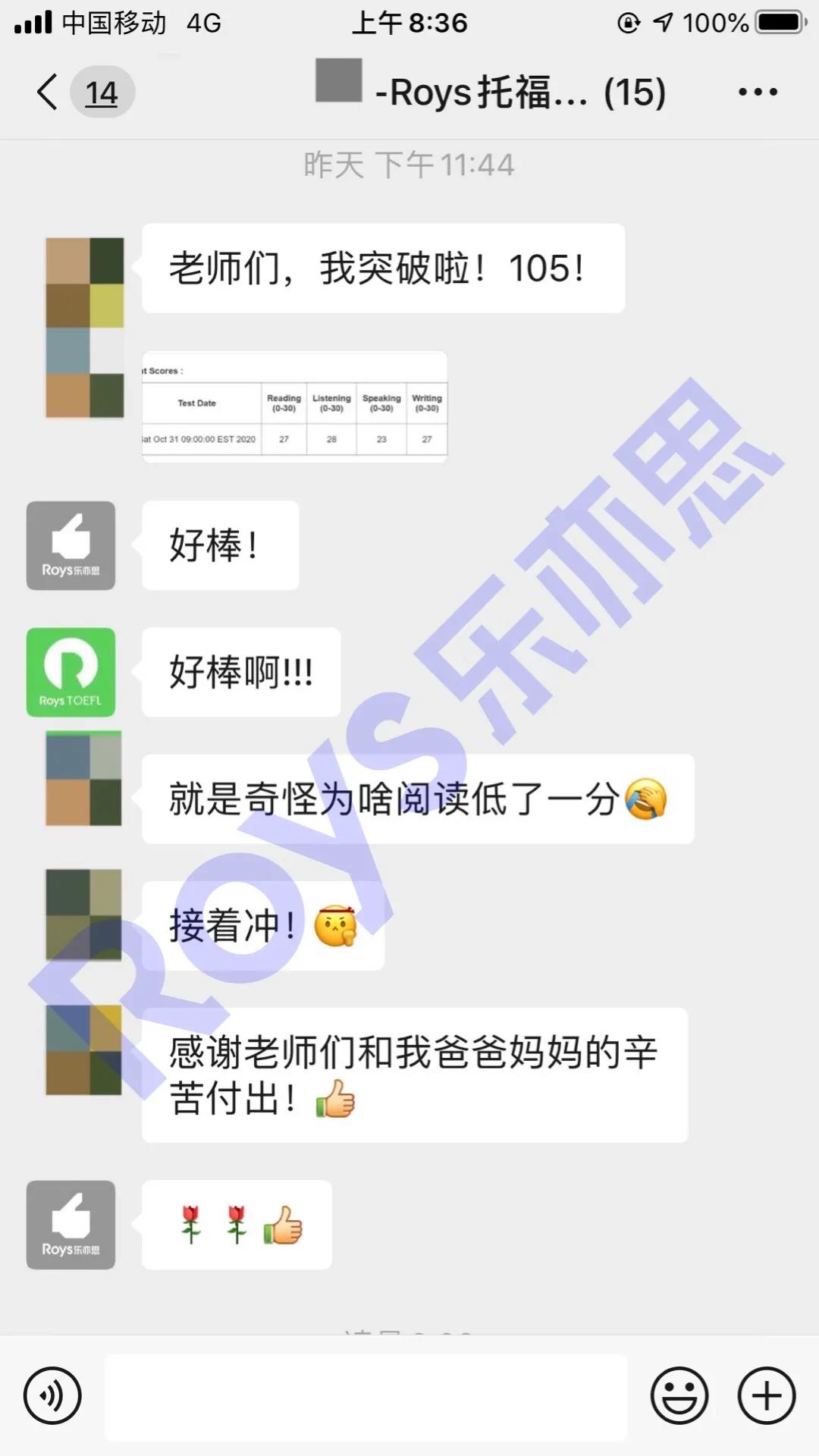 Roys樂亦思托福課程學(xué)員實現(xiàn)90到105的跨越