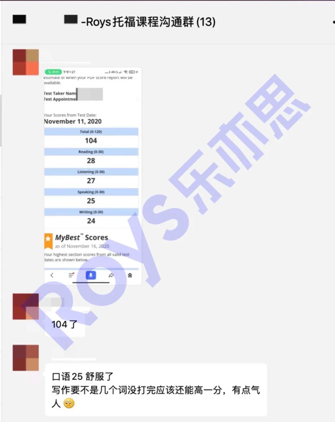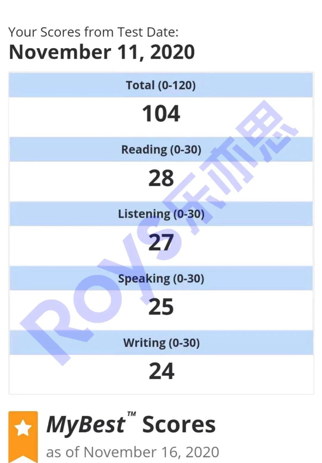 Roys樂亦思托福課程學員實現(xiàn)89到104的跨越