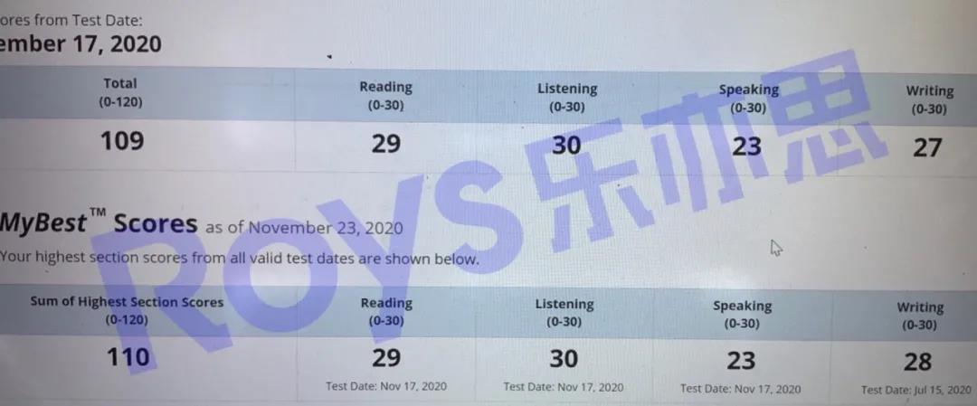 Roys樂亦思托福課程學(xué)員實現(xiàn)97到100的跨越