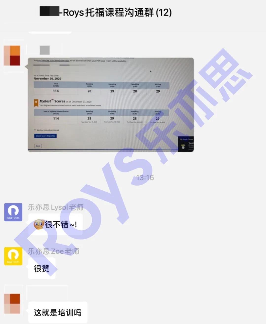 Roys樂亦思托福課程學(xué)員實現(xiàn)91到114的跨越
