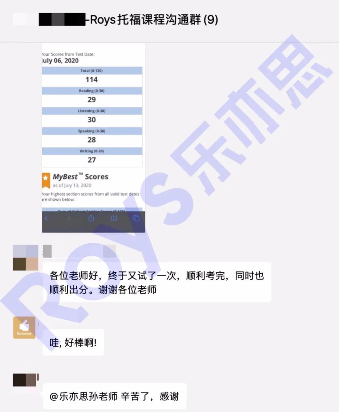 Roys樂亦思托??谡Z集訓(xùn)學(xué)員培訓(xùn)3天拿下28分,總分114