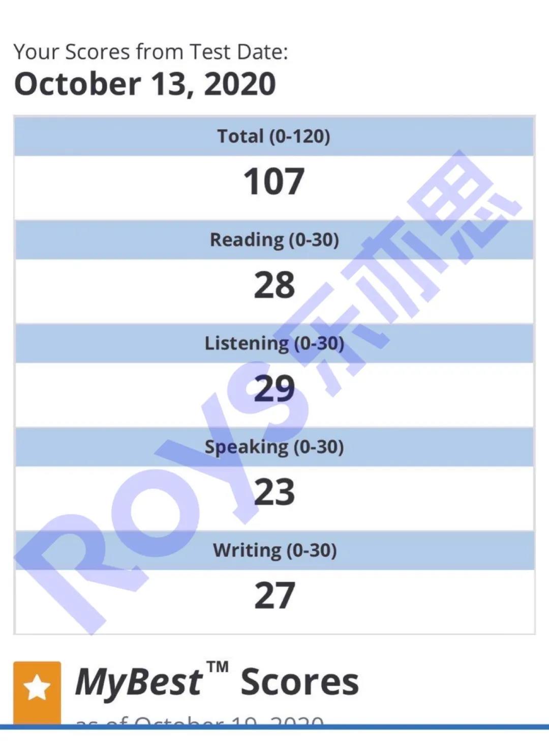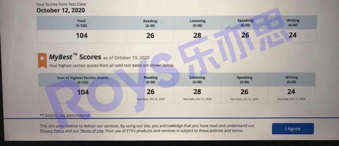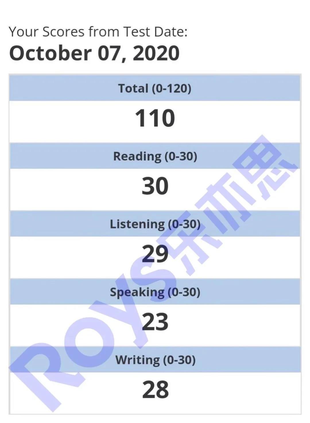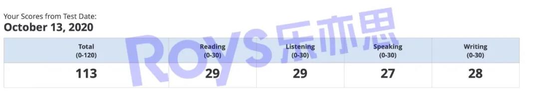 Roys樂亦思托福課程學(xué)員實(shí)現(xiàn)93到104的跨越