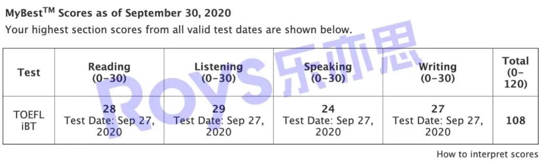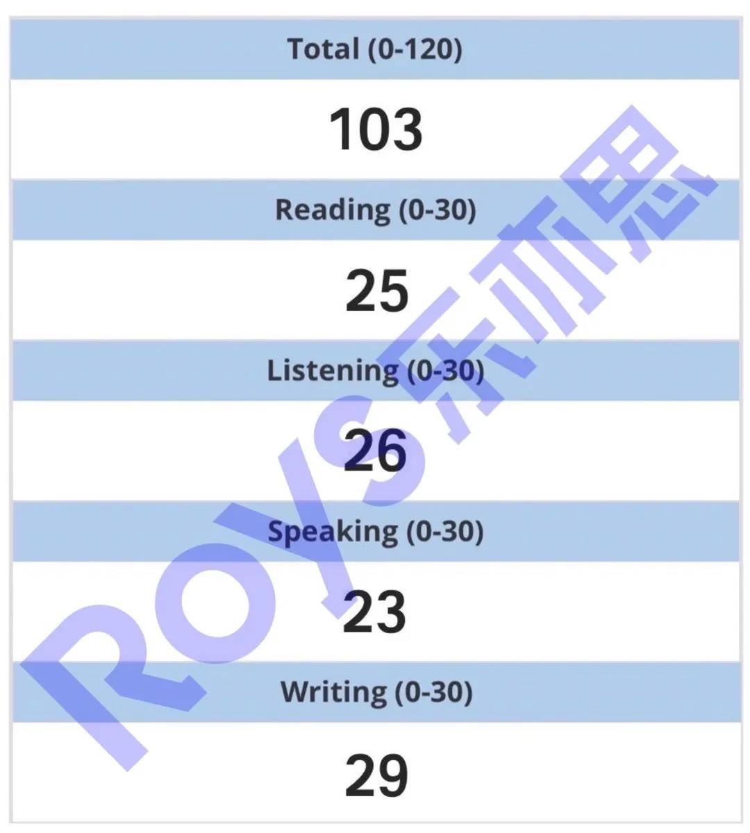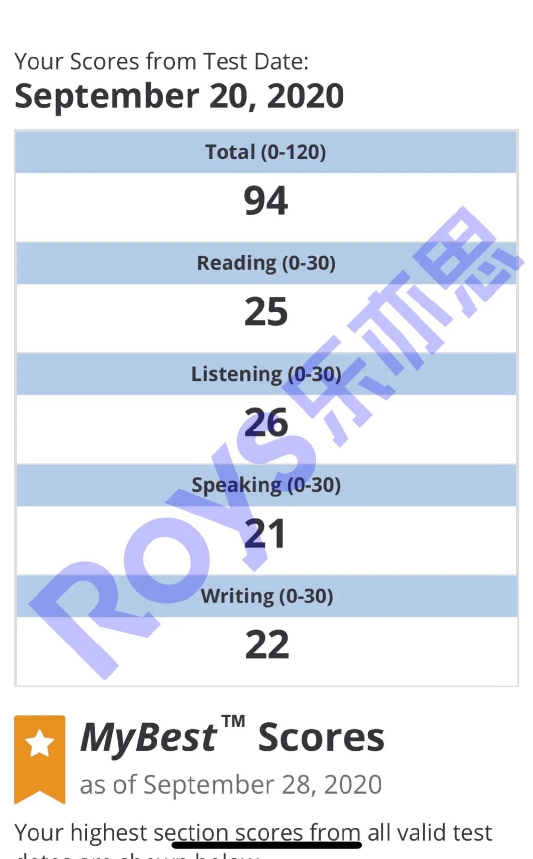 Roys樂亦思托福課程學(xué)員培訓(xùn)8天進(jìn)步9分,拿到114