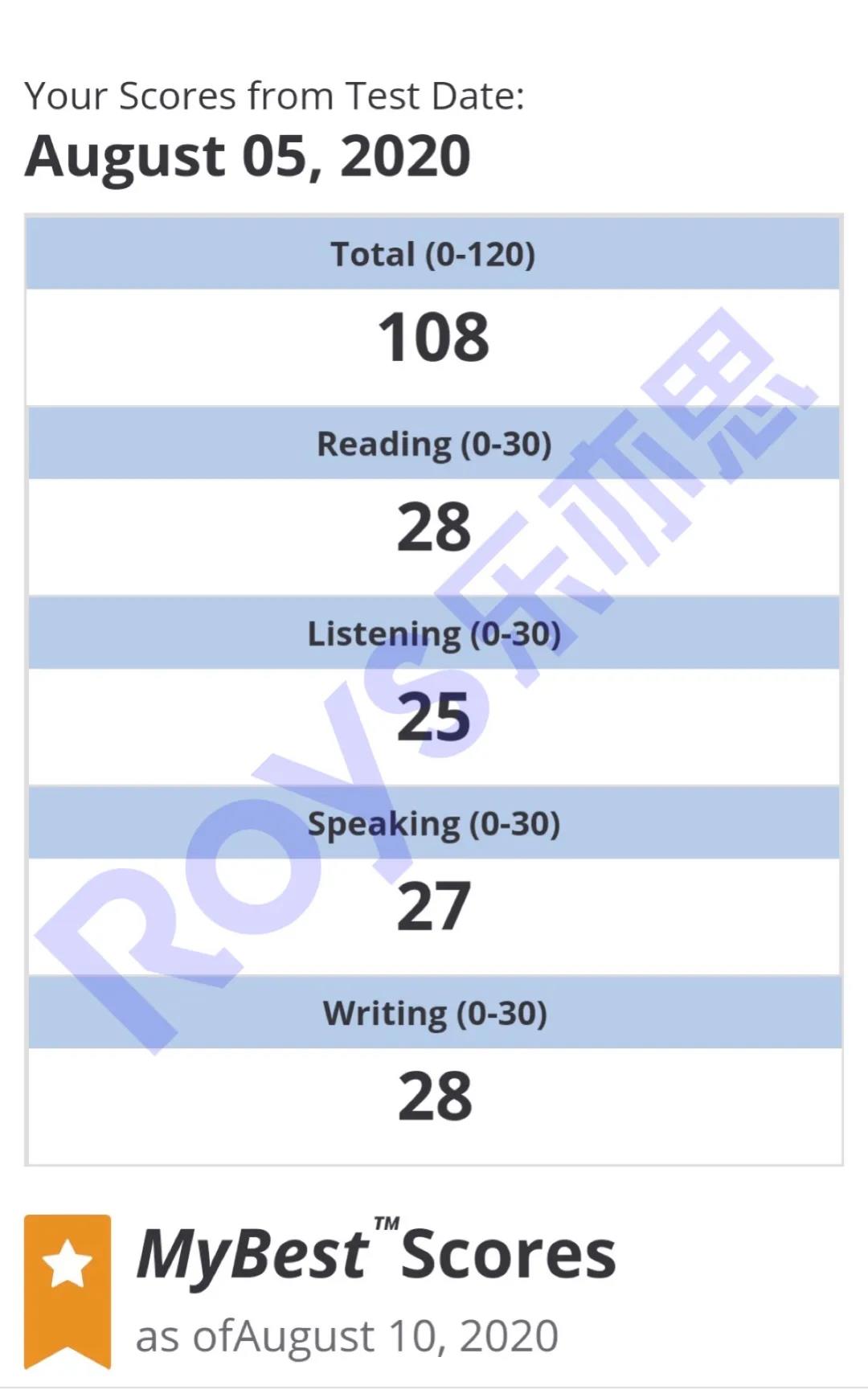 Roys樂(lè)亦思托福課程學(xué)員培訓(xùn)從85進(jìn)步到105分