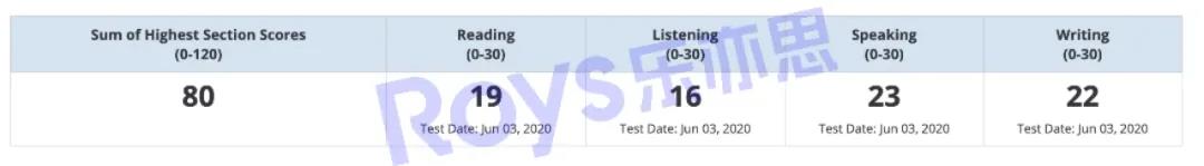 王同學(xué)參加樂亦思托福融合班課+一對一集訓(xùn),培訓(xùn)時長33天,進(jìn)步總分為30分,拿下109高分,順利進(jìn)階SAT。