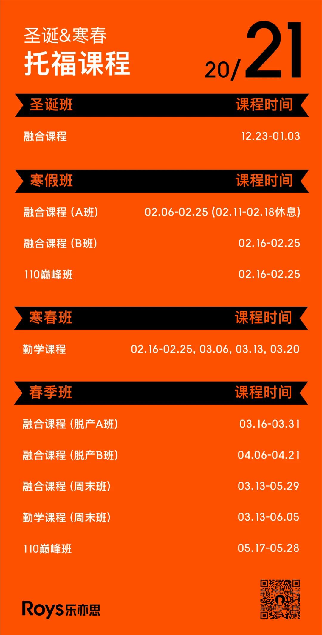 Roys樂亦思教研團(tuán)從來沒有停止對托福課程體系的調(diào)研,2020年末,我們根據(jù)不同學(xué)習(xí)需求的學(xué)員以及不同放假時(shí)間的學(xué)員,分別在圣誕節(jié)/寒假/春季設(shè)置了不同時(shí)間段的班課課程①設(shè)置托福勤學(xué)課程:適合托福學(xué)習(xí)處于入門階段的同學(xué),該課程能夠很好地培養(yǎng)語言能力和學(xué)習(xí)習(xí)慣;②設(shè)置托福融合課程:適合想要拿到托福95-100分的同學(xué),“輸入課程”和“輸出課程”打通四科底層邏輯;③設(shè)置托福110巔峰班:適合希望沖刺托福110+高分的同學(xué),該課程可以全面訓(xùn)練“語言能力+做題技巧+考試狀態(tài)”,同時(shí)大家還可以隨時(shí)報(bào)名VIP課程,進(jìn)行更加個(gè)性化的規(guī)劃。