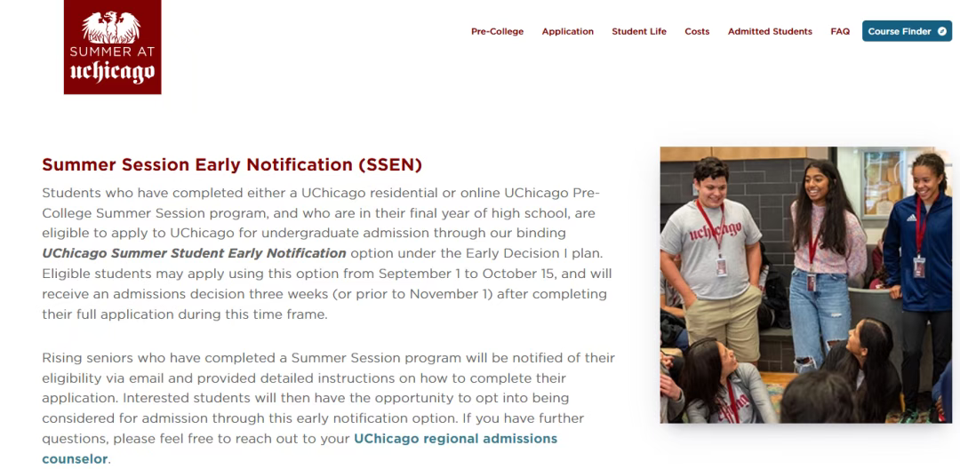從2024年9月開(kāi)始,只要參加過(guò)芝大的Pre-College Summer Session夏校項(xiàng)目,就有機(jī)會(huì)享受專(zhuān)屬申請(qǐng)批次——Summer Student Early Notification(SSEN),即ED0。